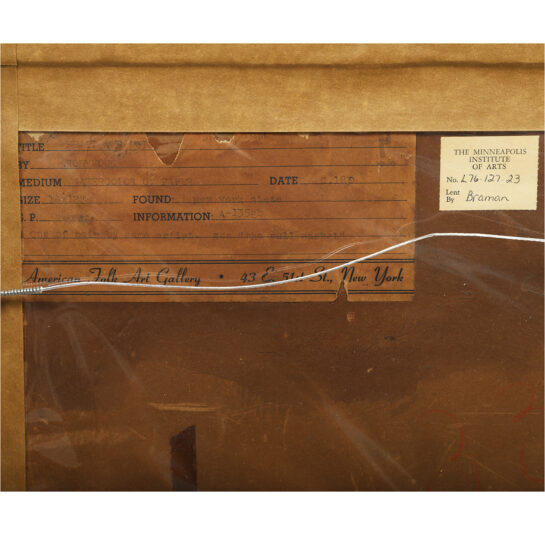 Labels verso: American Folk Art Gallery, 43 E. 51st St., New York; The Minneapolis Institute of Arts, Lent by Braman.