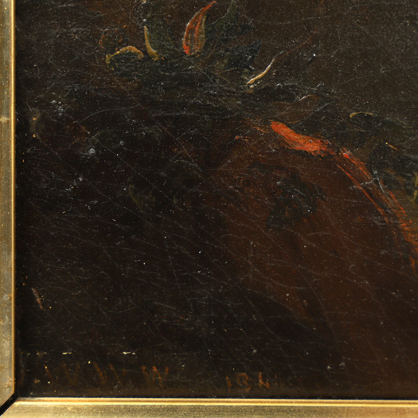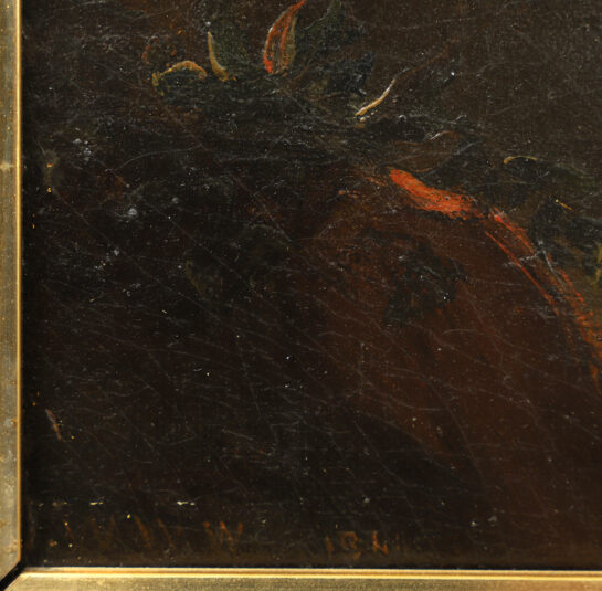 Wax lined, on original stretcher. Evidence of very minor in-painting under ultra-violet light (see image).