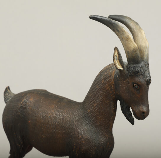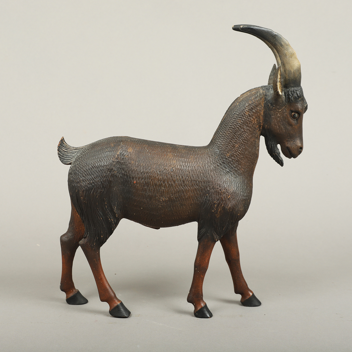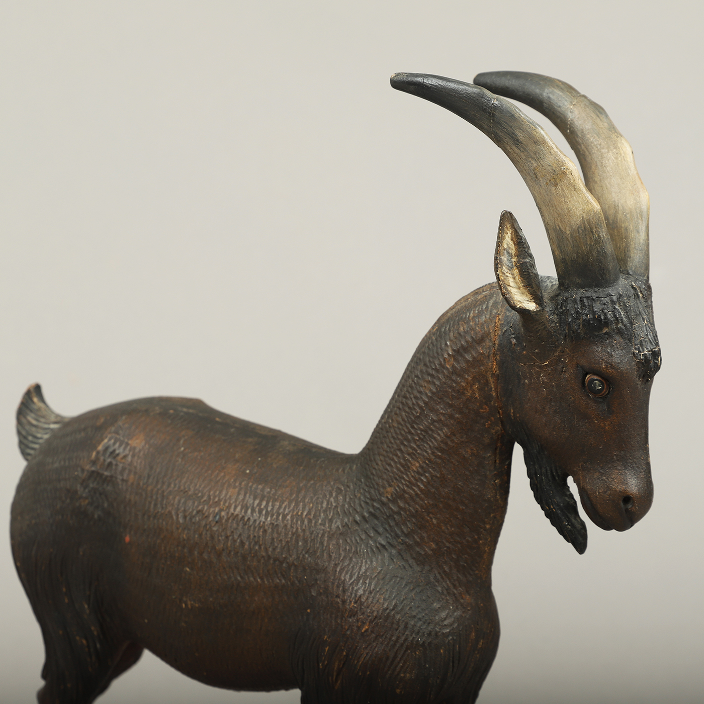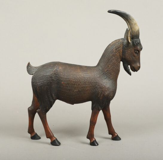 This miniature full-form standing Billy goat is accurately carved with great attention to detail.