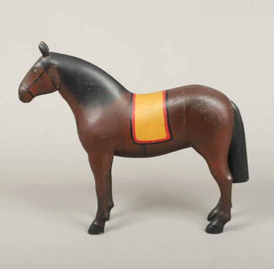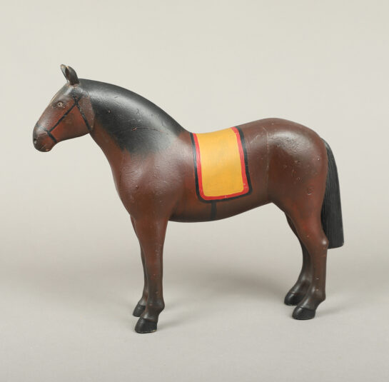 This well-carved model of a horse shares both a sophistication of form and a folksy manner in the horse’s presentation.