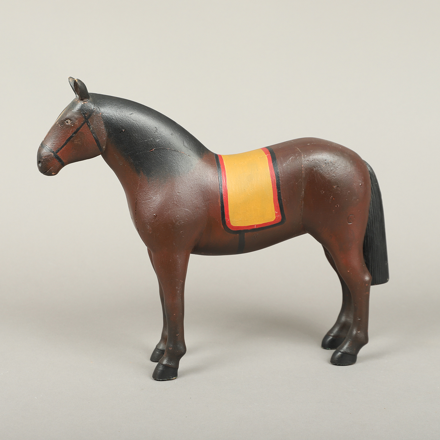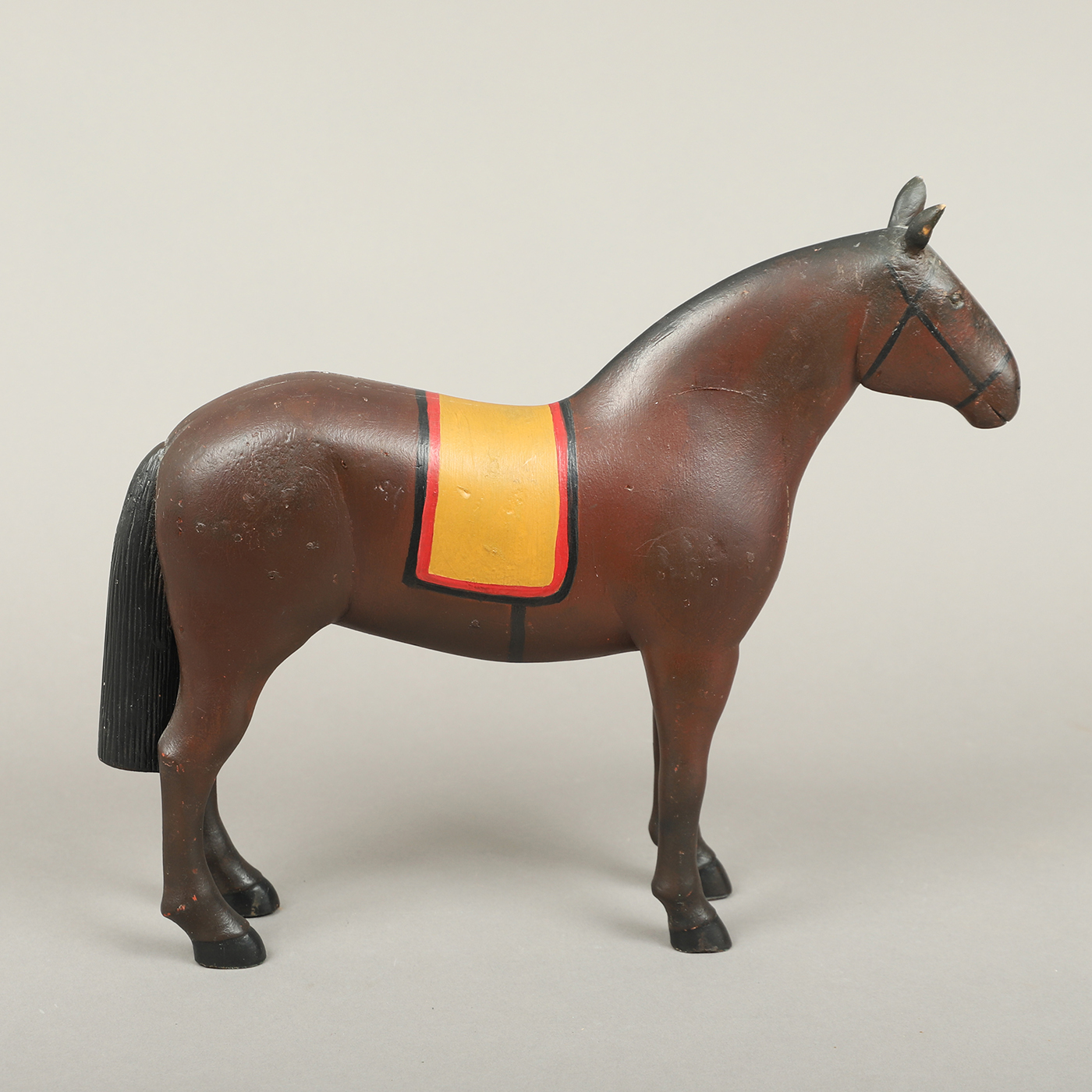 This well-carved model of a horse shares both a sophistication of form and a folksy manner in the horse’s presentation.