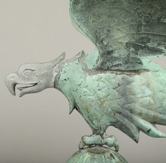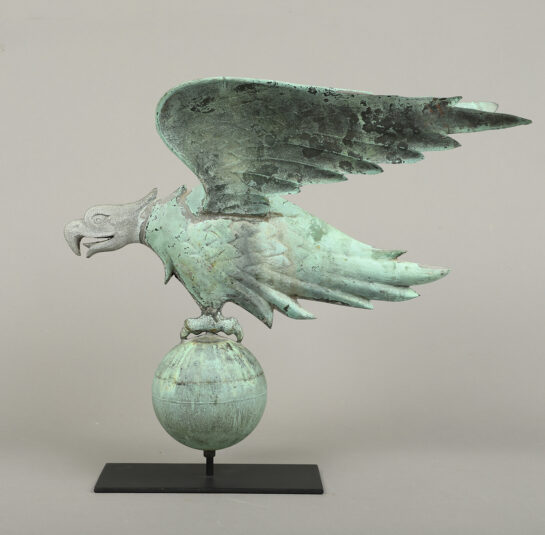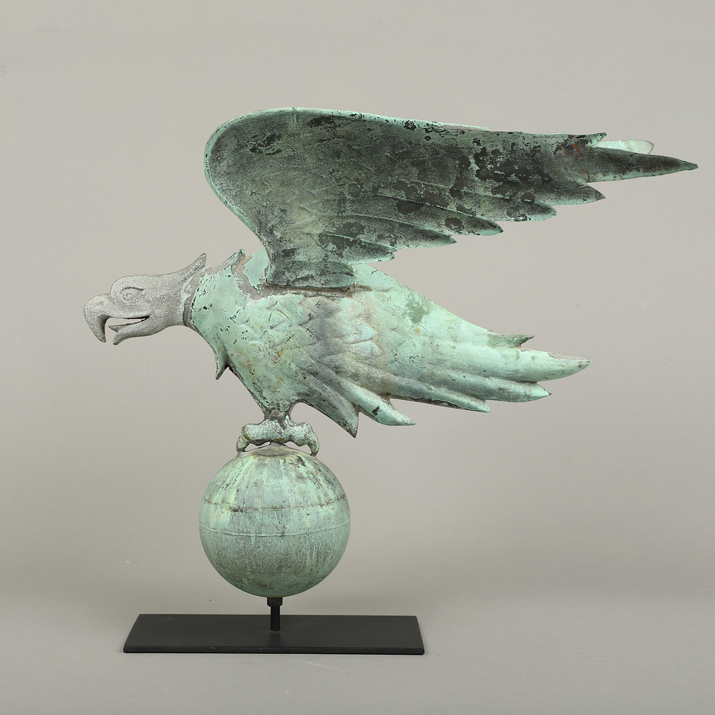 One of the most recognizable forms in early American weathervane manufacturing is an eagle with swept back wings and an imposing cast zinc head, made by A.L. Jewell and Co., who were one of the original pioneers in the industry.