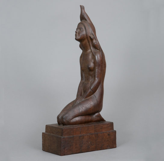 Eugenie Frederica Shonnard was born in Yonkers and studied with Alphonse Mucha and James Earle Fraser in New York, before moving to Paris where she studied with Antoine Bourdelle and Auguste Rodin. She exhibited at the Paris Salons of 1912, 1913, and 1922. She also exhibited at the Pennsylvania Academy of Fine Arts in 1916, the Museum of Modern Art in 1933, and at the 1939 New York World’s Fair. Among her notable early sculptures are busts of Alphonse Mucha and Dinah, the Bronx Zoo’s first gorilla.
