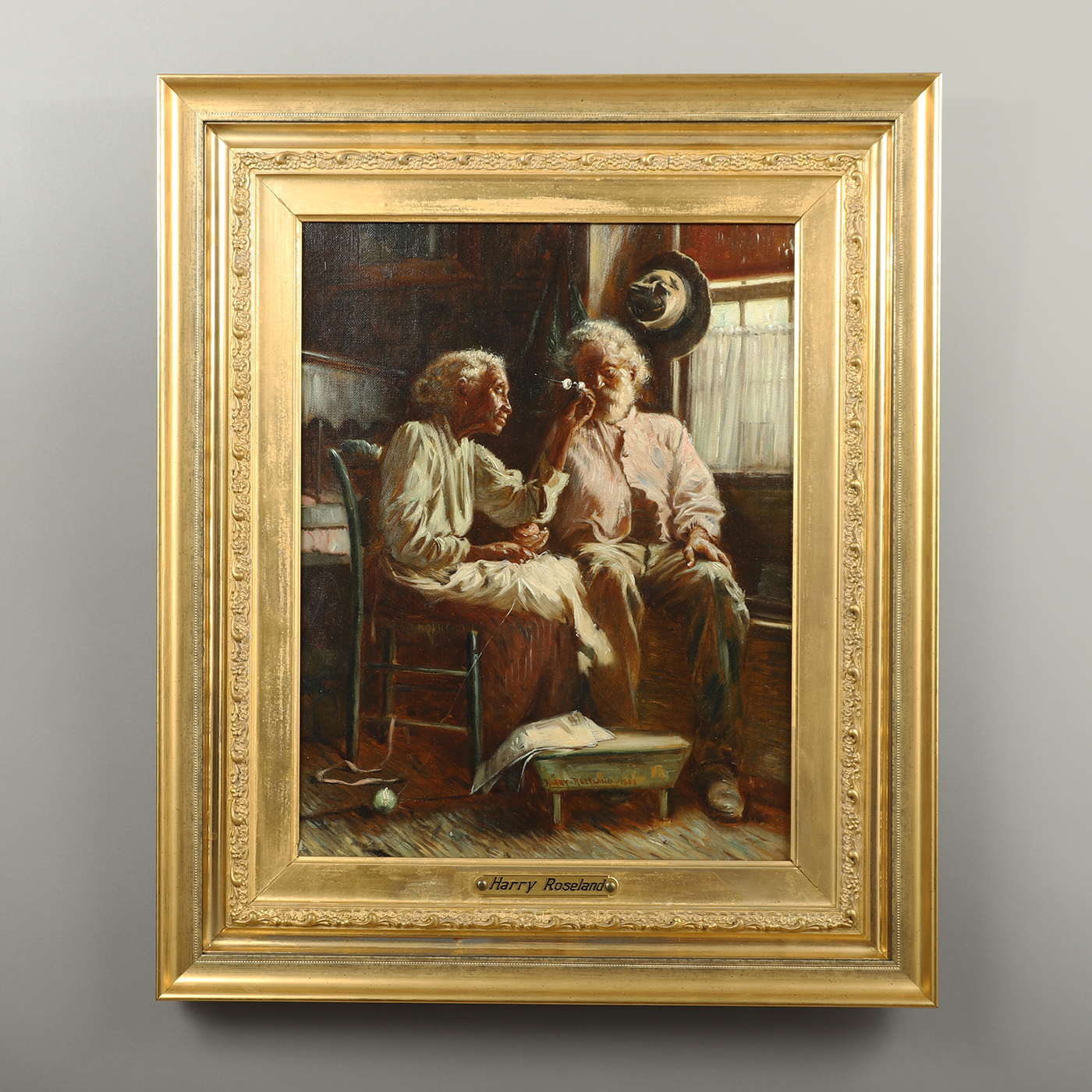 Harry Roseland was one of America’s first notable genre painters who continued to paint subjects that told a story throughout his career. His early subjects were sentimental and depicted fashionable people, rural folk and idealized farm scenes. Roseland studied with Thomas Eakins and J.B. Whittaker (in Brooklyn), which is evident in his style and technique of painting, as seen here.
