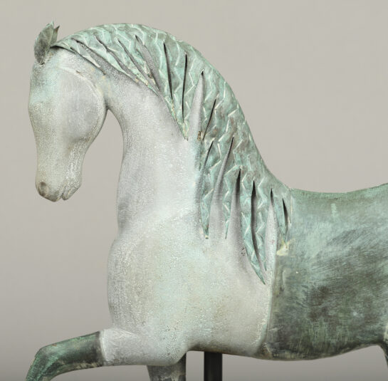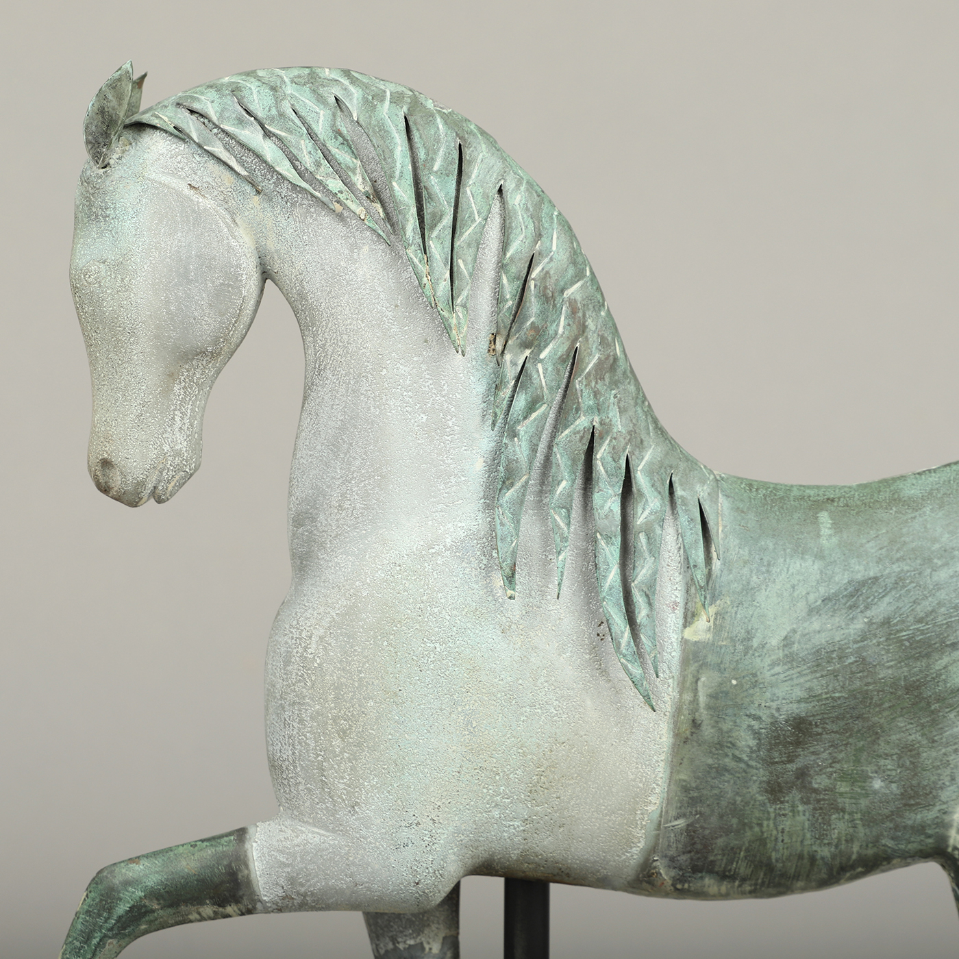 This rare signed Index Horse Weathervane with an applied mane in a desirable small size is one of only a few known.