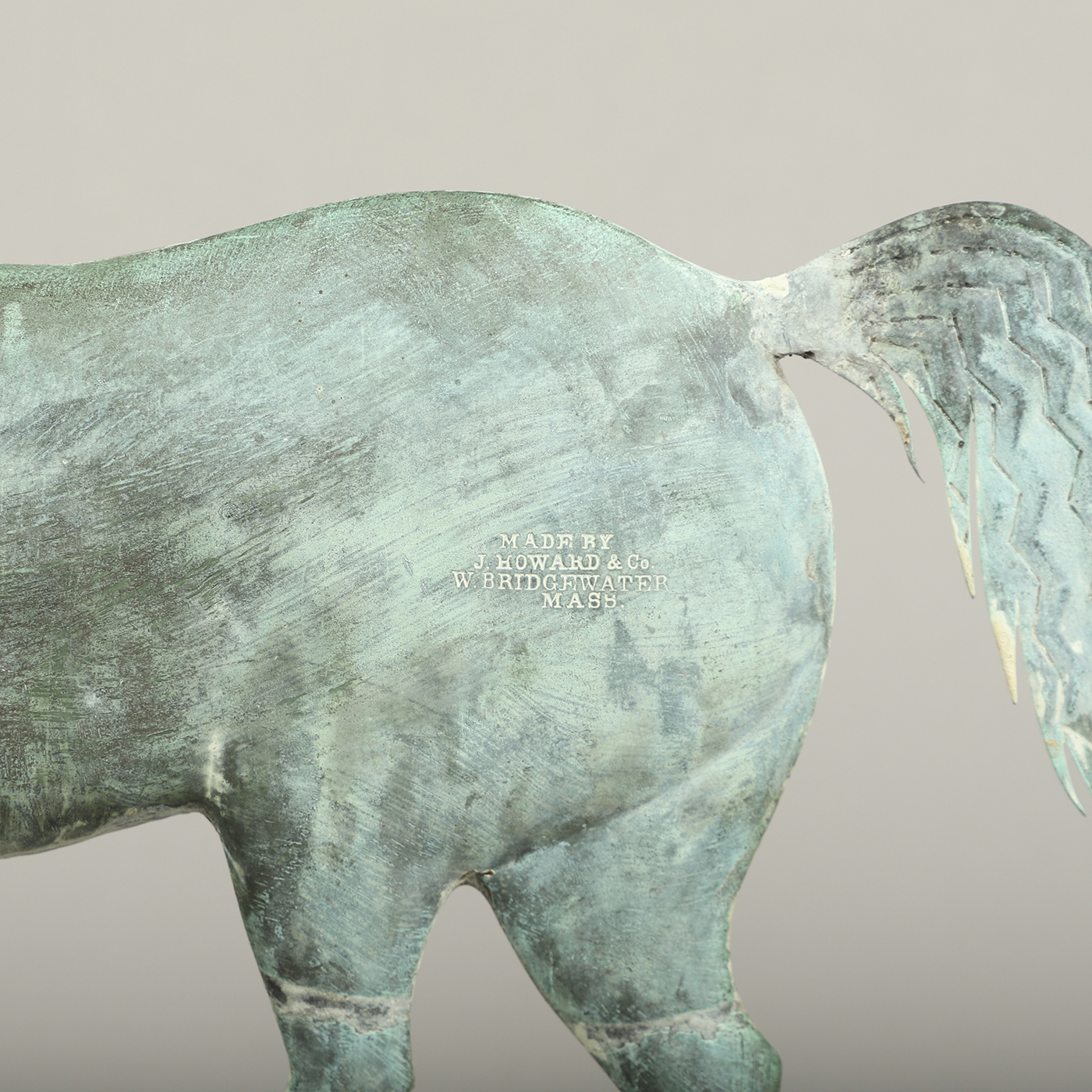 J. Howard and Co. were industry leaders and the only firm to use cast zinc front-portions on their weathervanes, giving them much more sculptural beauty—and more importantly—allowing them to better withstand natural elements than products made by their competitors. For these reasons, collectors have considered J. Howard & Co. the gold standard for quality weathervanes, which were made to withstand time and have given us eternal pleasure.