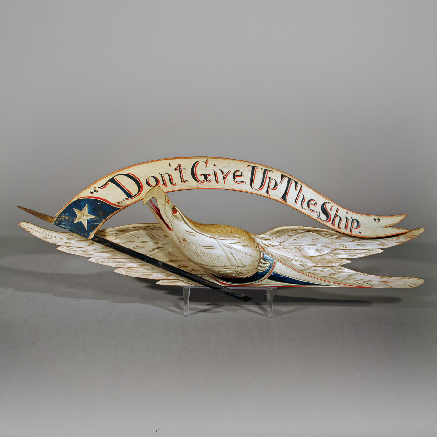 Carved Eagle with Banner Don’t Give Up the Ship with polychrome paint