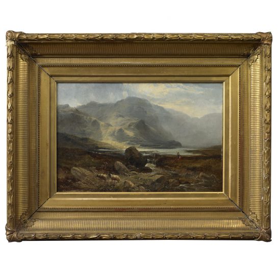 The mountainous landscape of Wales, like that pictured in A Highland Lake, was Percy’s favorite subject. Percy captured the grandeur of the countryside better than any of his contemporaries, and he was one of the most celebrated artists of Victorian England. Percy exhibited more than three hundred paintings during his life and his paintings are found in many public collections in the United Kingdom, Canada and the United States.