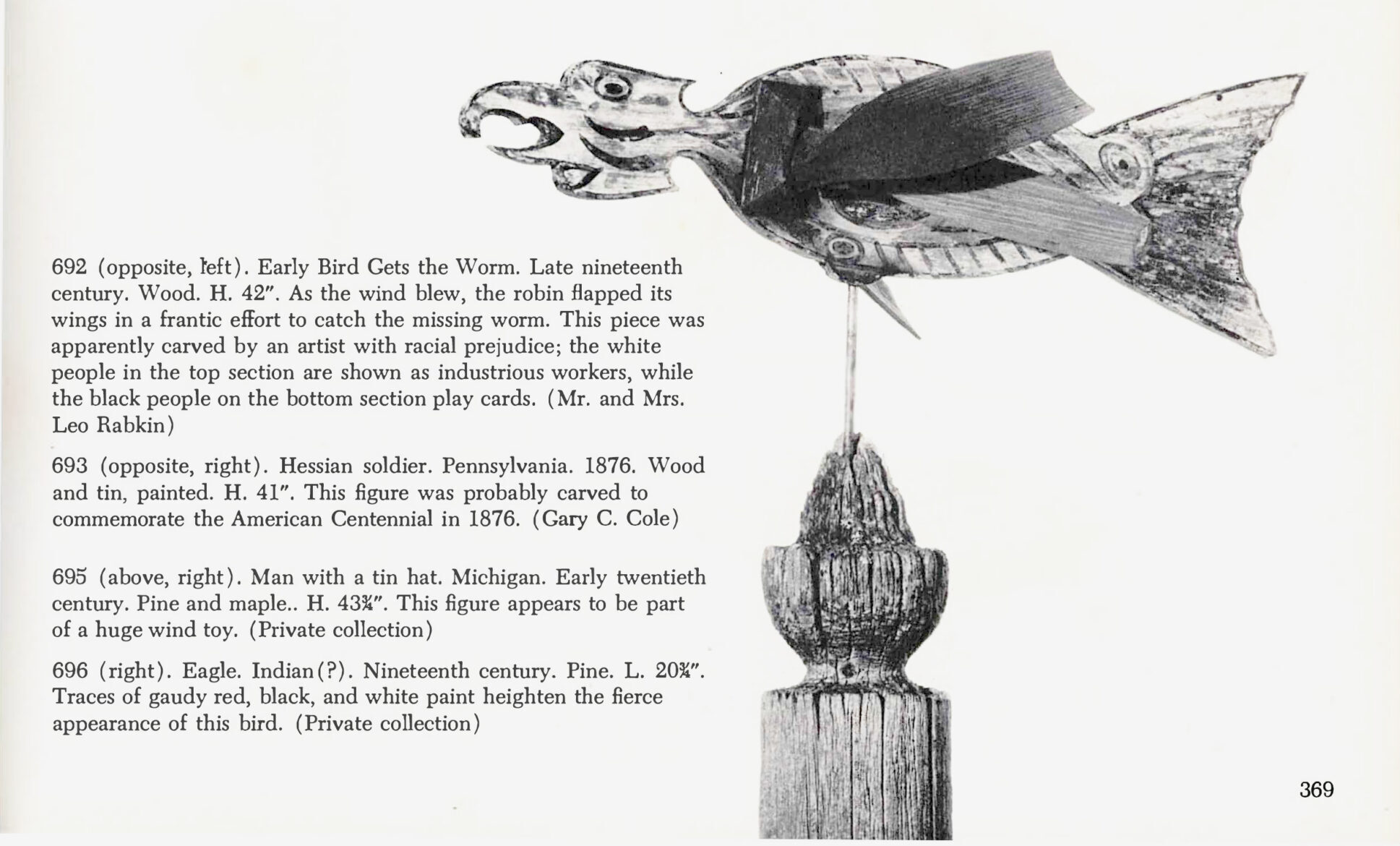 Illustrated in American Folk Sculpture, by Robert Bishop, E. P. Dutton & Co., Inc., New York, 1974, pg. 369, pl. 696.